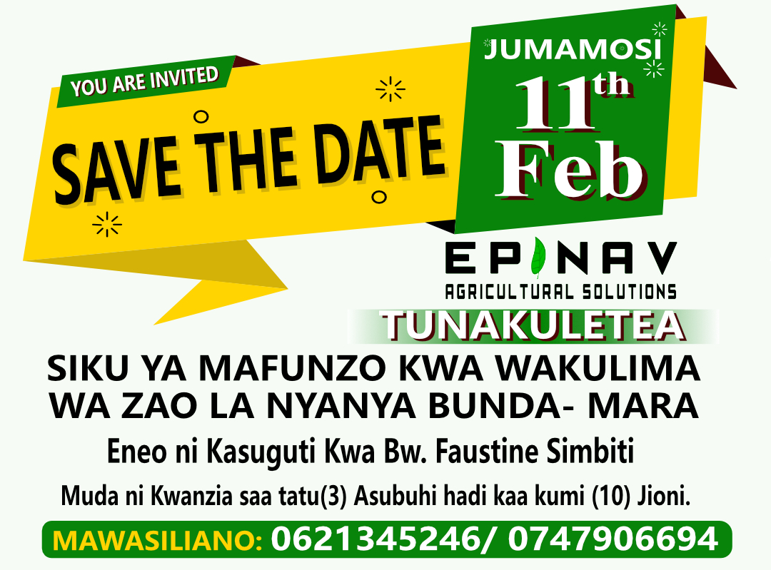 We are announcing a BUNDA Farmers Field Day (FFD) which will be held in Mara region, Bunda District, Kasuguti County and Kasuguti village on 11/02/2023 Saturday at 09:00 AM to 04:00 PM
